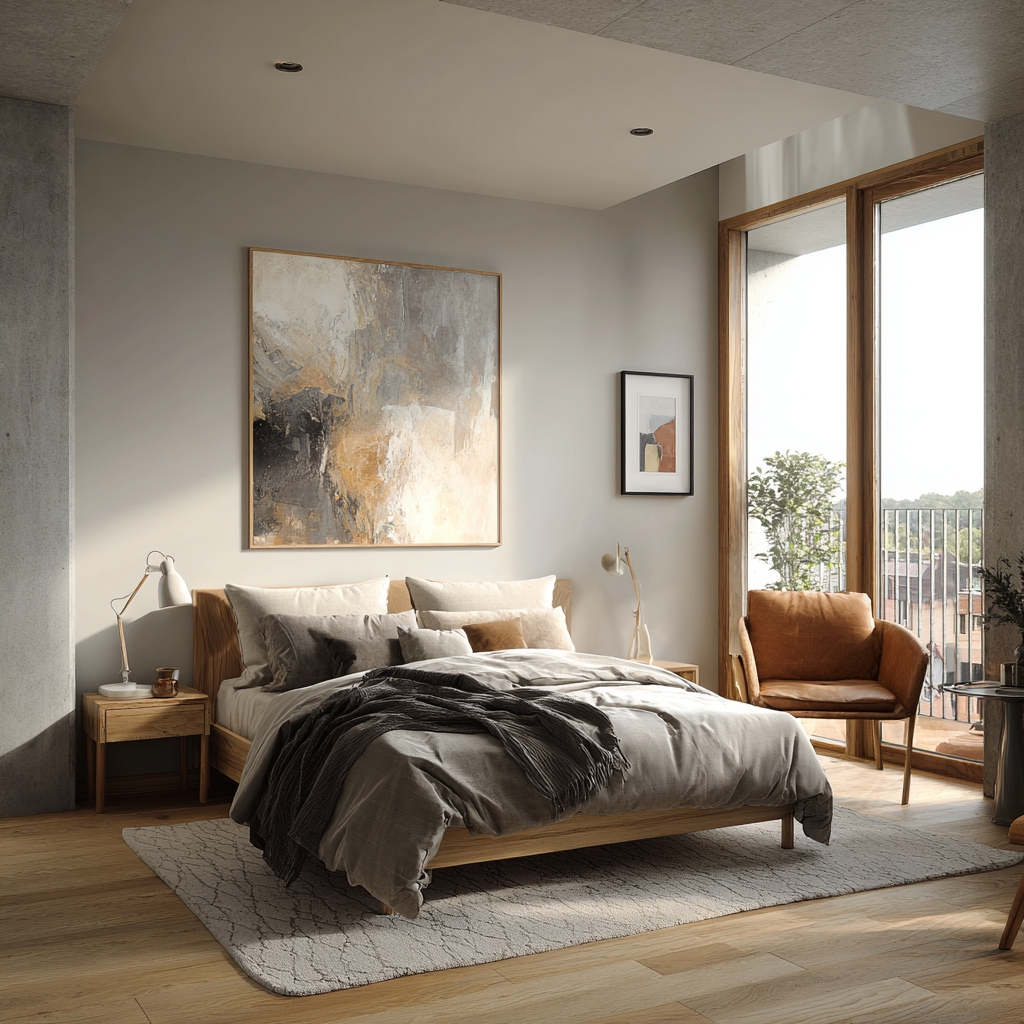 Ložnice s minimem rušivých podnětů podporuje klidnou mysl. Jednoduchý nábytek, teplé materiály a několik oblíbených dekorací stačí k tomu, aby místnost působila útulně, aniž by zahlcovala. Prostor čistý, vzdušný a harmonicky uspořádaný přirozeně vede ke zpomaleni a klidnému usnutí.